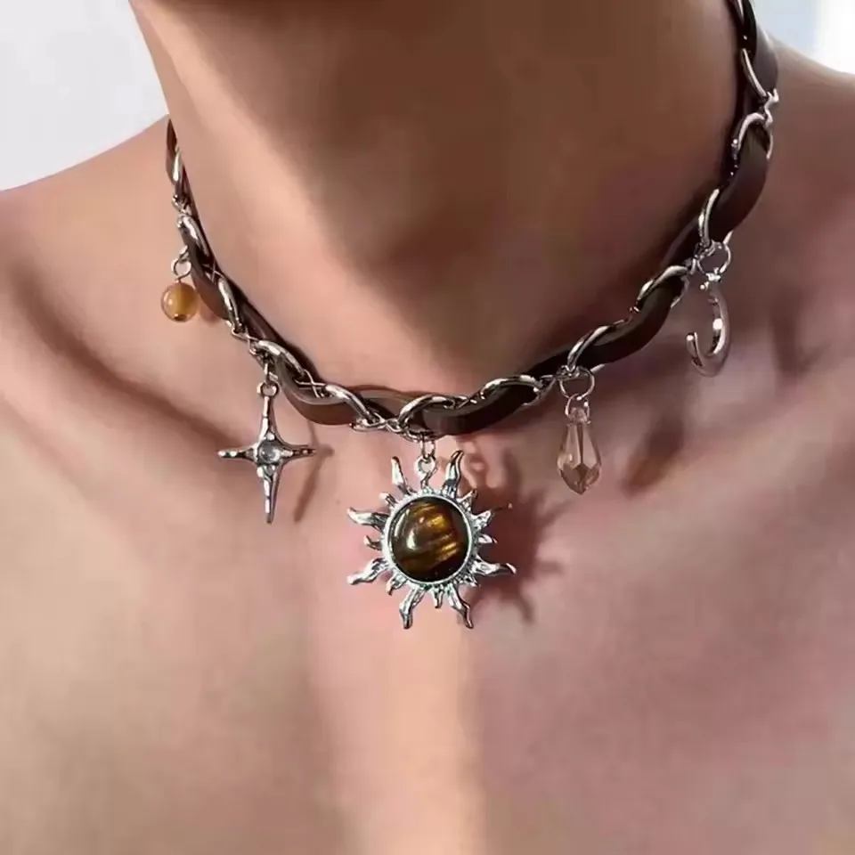 This awesome product, you can get this Fashion Jewelry. Click the button below to read more details about Vintage Leather Brown Stone Sun Butterfly Pendant Choker Clavicle Chain Rope Necklace For Women Men Trendy Grunge Y2K JewelryNew